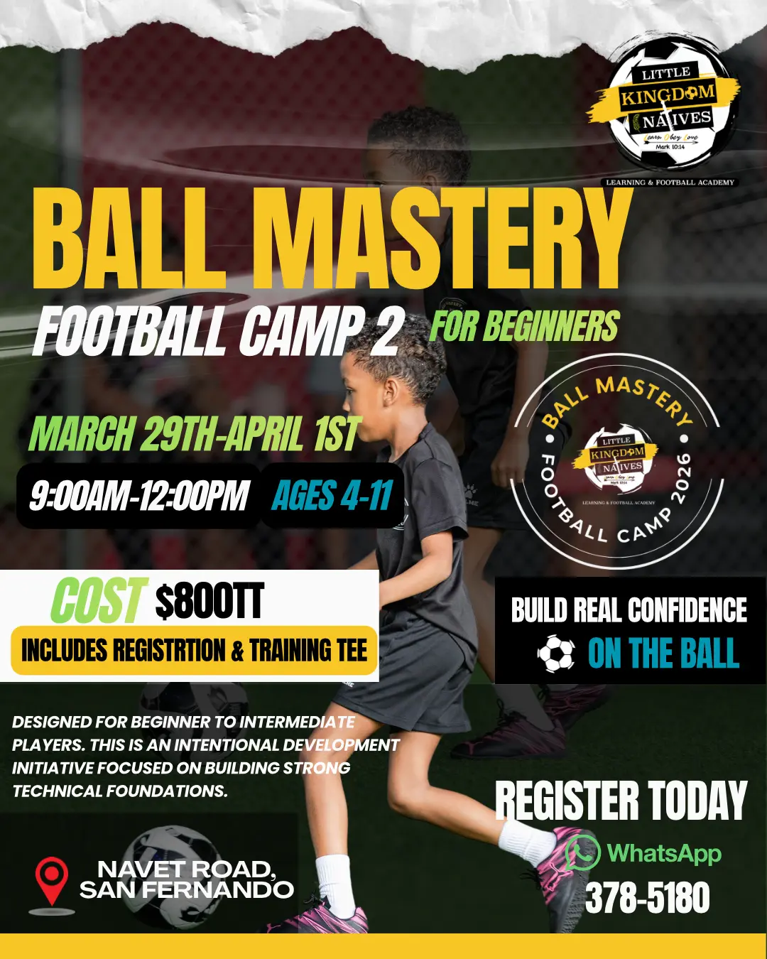 Join us for our 2nd Ball Mastery Football Camp designed to help players sharpen their game through focus technical development.