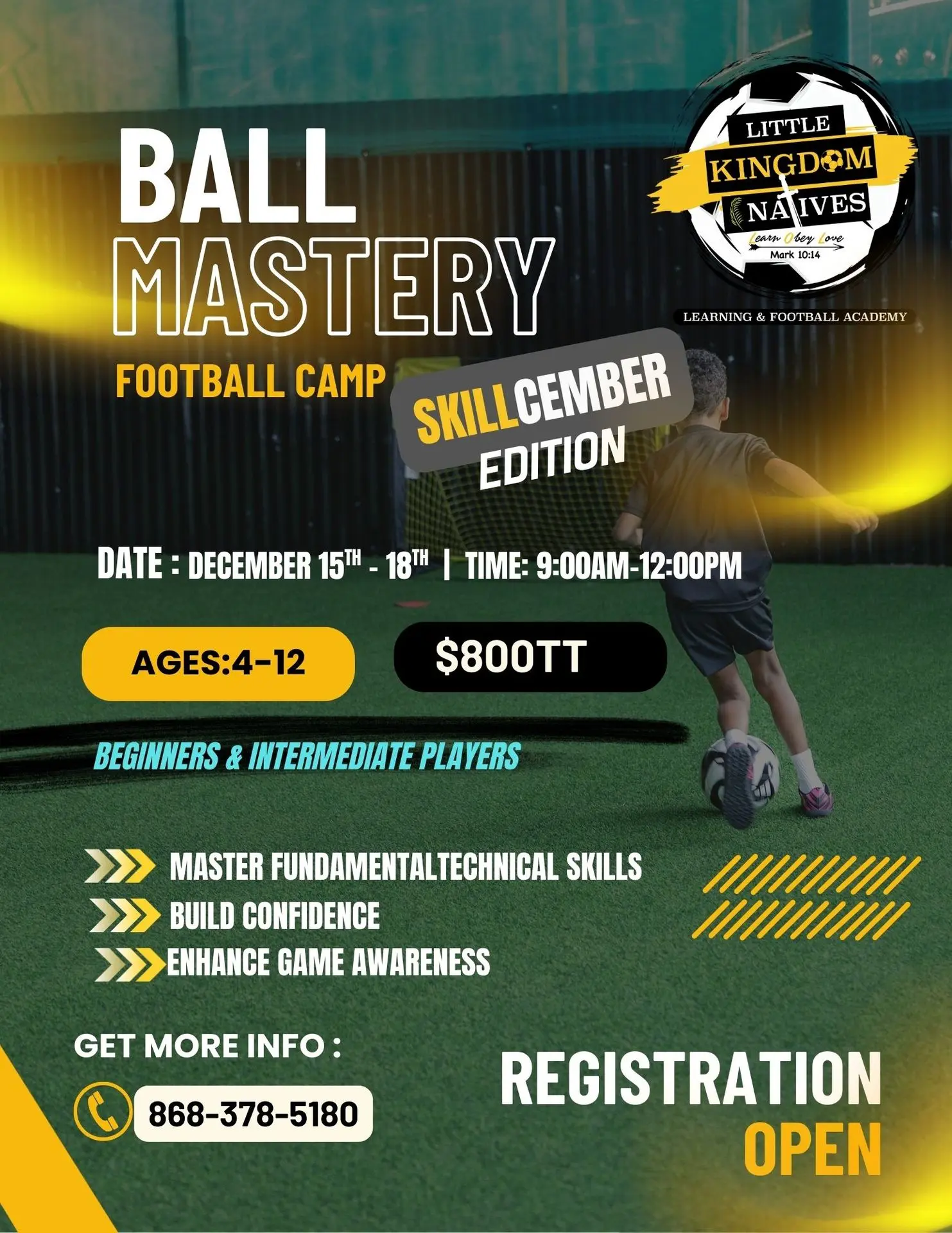 Little Kingdom Natives’ First Ball Mastery Football Camp is designed to help beginners develop a strong foundation in football through skill-building, discipline, and creativity. This camp focuses on mastering the fundamentals — from ball control to footwork — in a supportive environment that encourages growth, confidence, and a love for the game.